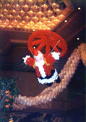 天井からサンタのオブジェを吊って、まるで煙突から降りてきたような作りとなっています。