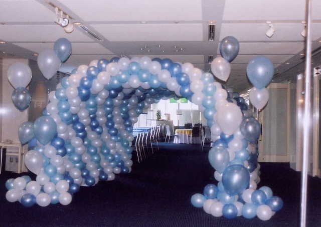 バルーンのアーチをいくつも重ねて、大きなトンネルにしています。