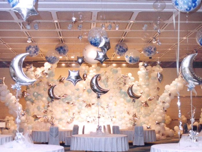 天井にはスパークバルーンが仕掛けられ、小さなバルーンが舞い降りる…という豪華な演出も取り入れました。