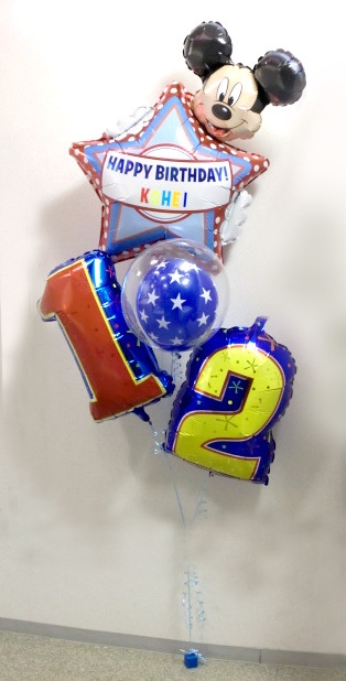 ミッキーのバルーンにはアルファベットのお名前シールをお貼りすることが出来ますので、思い出に残るプレゼントとなるのではないでしょうか。