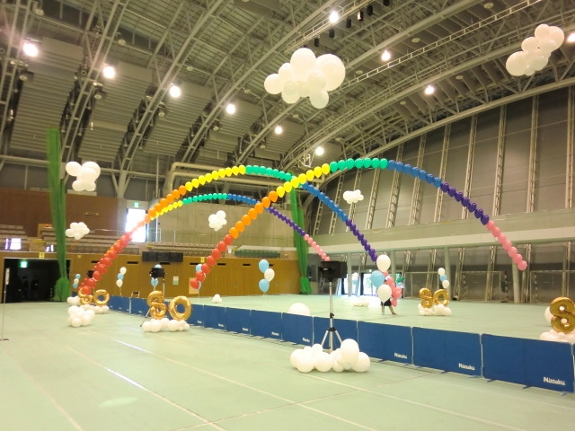 周年の数字のバルーンを組み合わせて、より式典のコンセプトに添うようご提案をさせて頂きました。