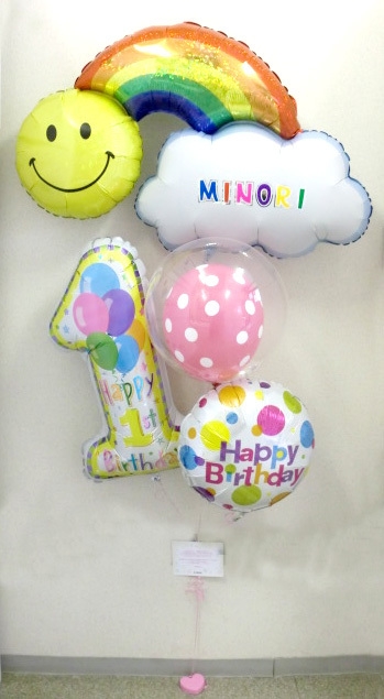 数字の「1」のバルーンと虹のバルーンはご指定を頂き、残りはご予算内でお任せいただきました。