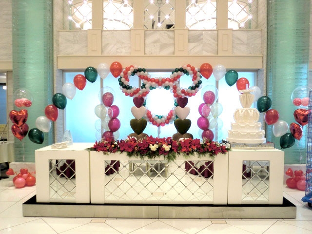 ミッキーマウスを模ったバルーンのフレームと、バルーンアーチを組み合わせた豪華なデコレーションです。
