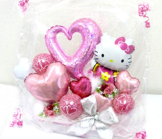 キティちゃんが好きなご新婦様へ、ご友人様からバルーン電報のご依頼です。