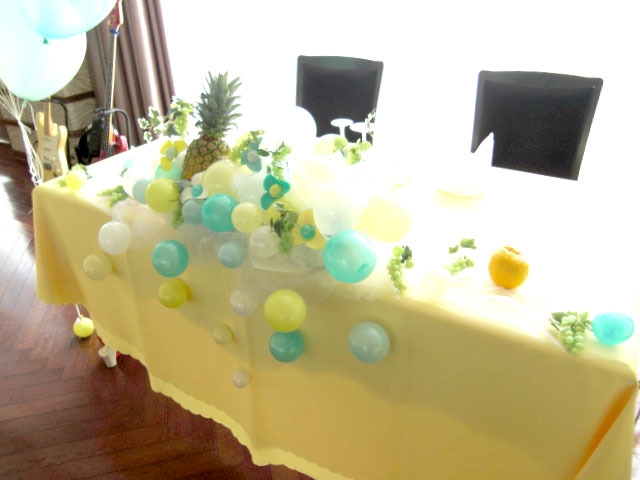 メインテーブル装飾に、パイナップルを組み合わせました。