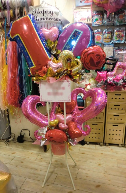 お誕生日用のご依頼頂いたので、大きな数字のバルーンで年齢を入れ、赤やピンクなどのバルーンで可愛らしく仕上げさせて頂きました。