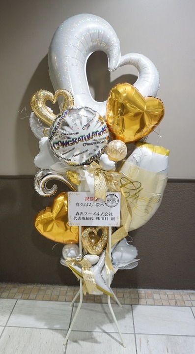 屋外、屋内どちらでもセットが可能なアイテムで、開店祝いや周年祝い、ライブのお祝いなどで大変人気の商品となります。