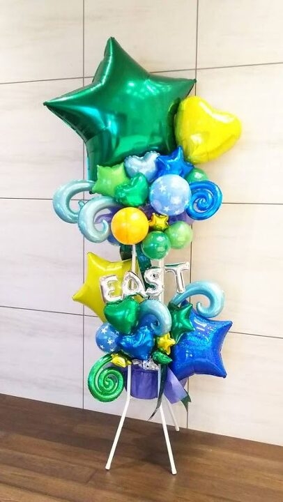大きな星をメインに、小さいサイズの星やハート、文字バルーンで飾りつけさせて頂きました。