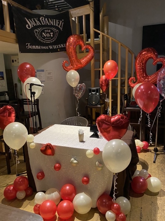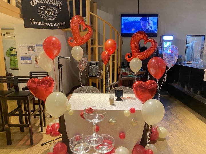 赤と白をメインにハートのバルーンを使い、可愛らしくも大人な雰囲気で仕上げました。