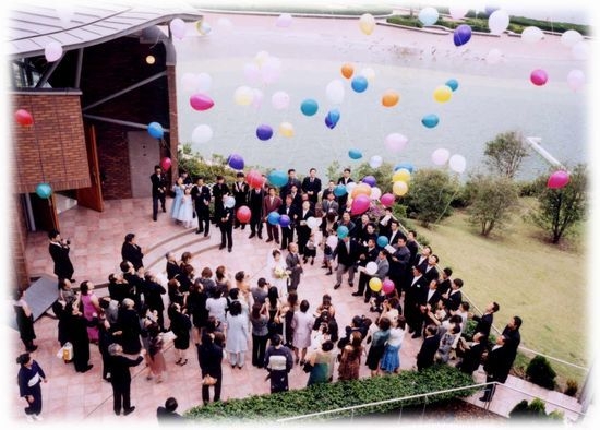 挙式後のバルーンリリースの演出風景です。