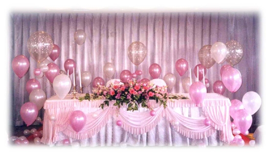 メインテーブルの周りをたくさんの浮かぶバルーンで囲んで幻想的な世界を演出。