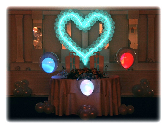 ハートはブルーの光を放ちますが、周りのバルーンはゆっくりと色を変えて光ります。