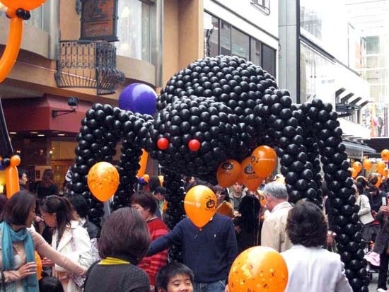 道行く人々がクモの下を通過しながら、お写真の撮影を楽しんでいらっしゃいました。