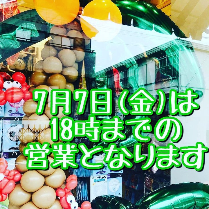誠に勝手ながら7月7日(金)は18時までの営業とさせていただきます。