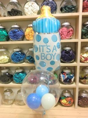 かわいいパステル調の哺乳瓶のバルーンと人気の透明バルーンを組み合わせたギフトです。