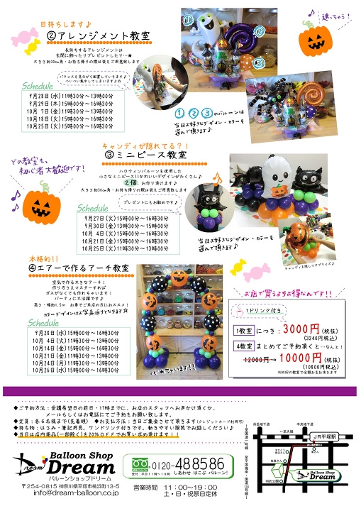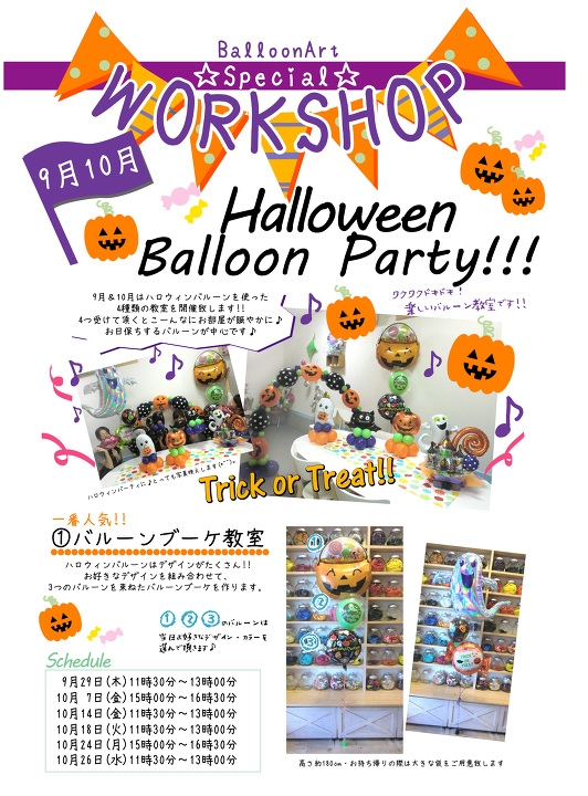 9月・10月はハロウィンバルーンを使った4種類の教室を開催いたします♪