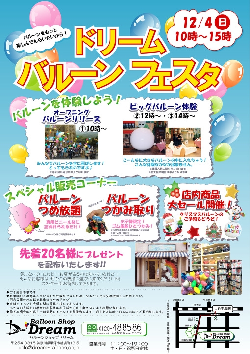 【イベント】12月4日(日) ドリームバルーンフェスタ開催のお知らせ🎈(2016/11/02)