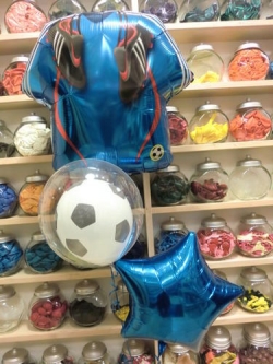 日本代表のユニホームのお色(青)のバルーンとサッカーボールのバルーンに星のバルーンを組みあわせました!