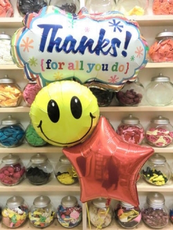 サンクスバルーンとかわいいスマイル☺のバルーンと星のバルーンの組みあわせ♬