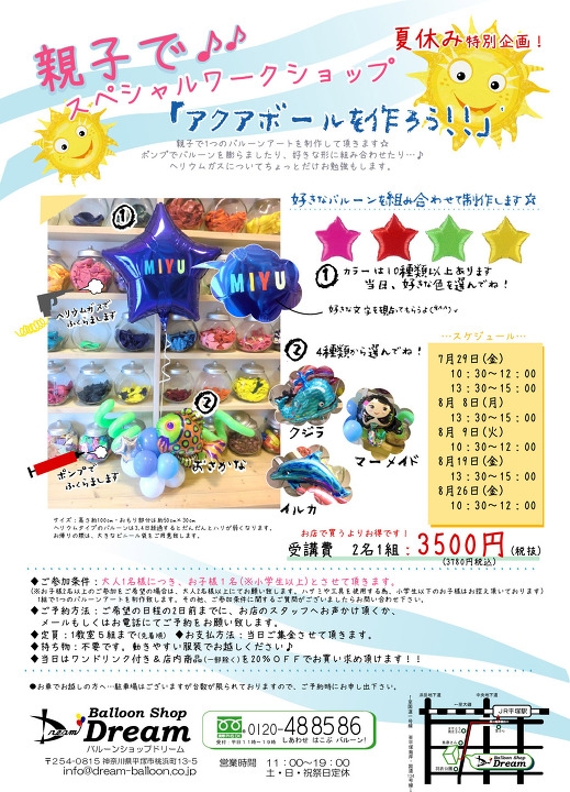 夏休みのスペシャルワークショップは親子で1つのバルーンアートを制作していただきます♪