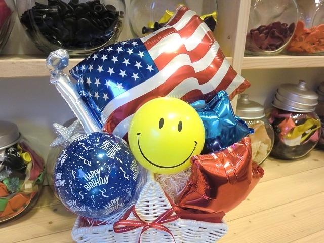 アメリカ国旗のバルーンを使用したバースデーアレンジメントも入荷しました♪
