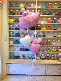 ピンクを基調としたヘリウムガス入りの3種のバルーンギフトをご用意いたしました♪