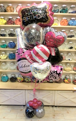 ピンクとブラックを基調としたかわいい女性向けのバルーンギフトが新登場♪