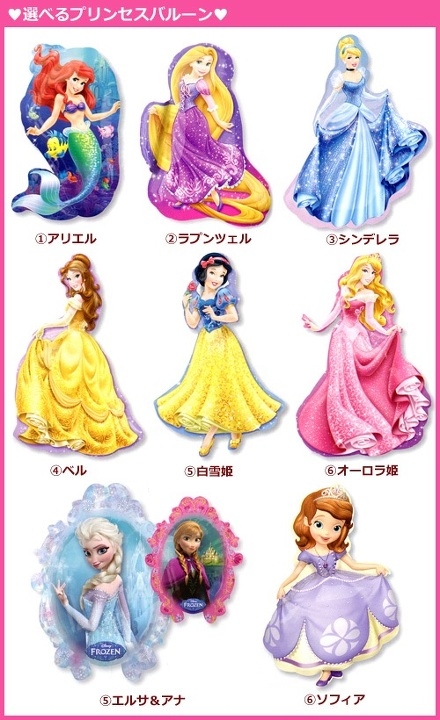 8種類のディズニープリンセス(写真中)から1つお選びいただくバルーンギフト♥︎