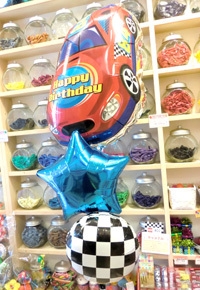 こちらは車好きの方へのバースデーギフトにオススメです★一番上のスポーツカーバルーンに「Happy Birthday」のメッセージ入りです♪