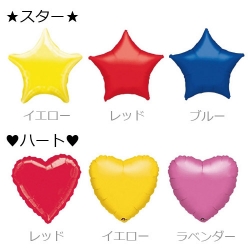 ハート型バルーン・星型バルーン、各3色計6種類の中からお選びいただけるバルーンギフトです♪