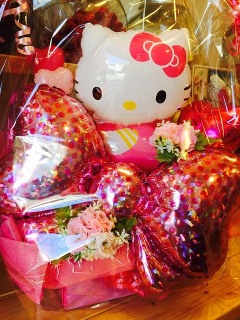 キティちゃんとハートのバルーンをメインに全体をピンクのお色で仕上げています♡