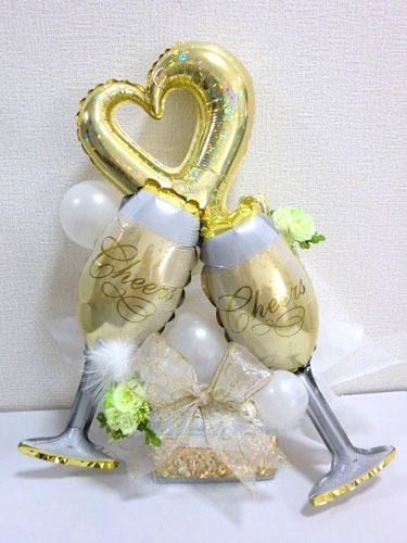 シャンパンボトルのバルーン2つがまるでお祝いの乾杯をしているよう!