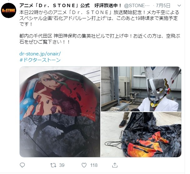 アニメ「Dr.STONE」のオリジナルアドバルーンを